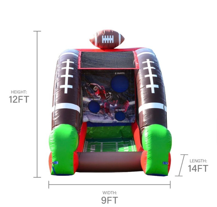 Let your guests feel like they’re on game day with the Football Sports Challenge — an inflatable target game that brings passing practice, healthy competition, and tons of laughs to any event. Players step up and aim foam footballs at a back wall that features designated goal openings with different point values, turning simple throws into a score-driven challenge. It’s perfect for birthday parties, school events, church gatherings, company picnics, and backyard fun. Designed for players ages 3 and up, this rental includes one foam football and encourages exercise, hand‑eye coordination, and good sportsmanship as friends and family compete to hit the highest-value target.